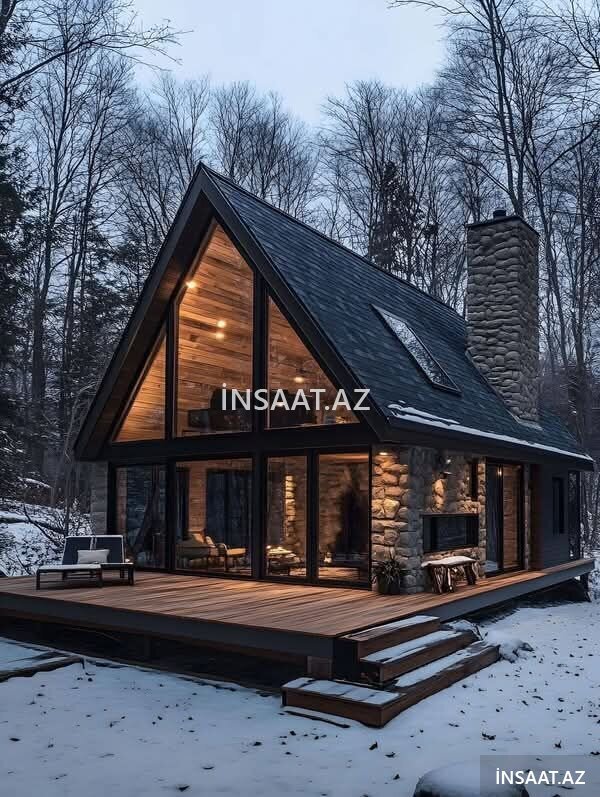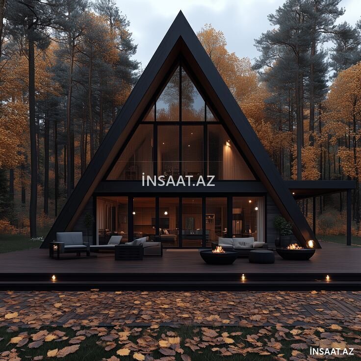 A frame ev, A-frame ev, üçbucaq ev, modul ev, taxta ev, dəmir karkas ev, bağ evi, dağ evi