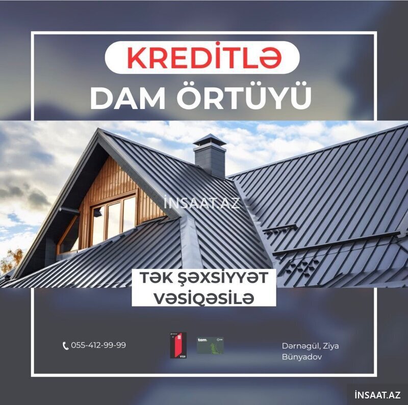 Dam örtükləri kredi̇t-lə, nağd həmçinin taksit kartları ( bi̇rkart, tamkart, bolkart) ilə i̇stənilən təmir-tikinti materiallarını əldə edə bilərsiniz. Kredit şərtləri və qiymətlər haqqında əlavə məlumat üçün aşağıdakı