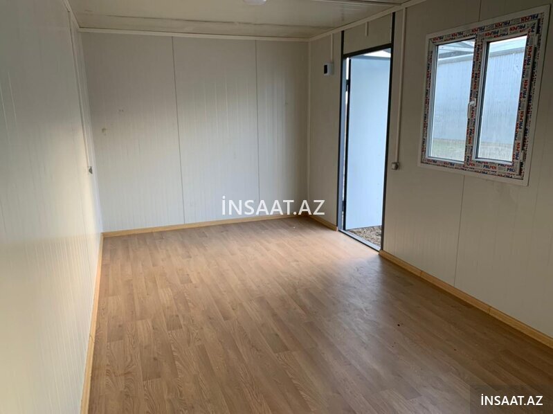 400 Azn 8 ədəd modul olan ofis konteyneri (demonte): Karkas ölçüləri (mm): W-6000 x L-2400 x H-5300, RAL 7016 - Dam və divar örtüyü - PUR sendviç panel, 50mm, RAL9002; - Döşəmə örtüyü - OSB 18mm, üzərindən laminant; - PVC