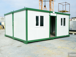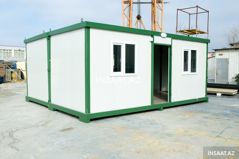 Şirkət22600 Azn Ofis tipli konteyner binası (demonte): Karkas ölçüləri (mm): W-2400 x L-6000 x H-2650, RAL 7016 - Dam və divar örtüyü - PUR sendviç panel, 50mm, RAL9002, - Döşəmə örtüyü - OSB 18mm, üzərindən laminant; - PVC Pəncərə