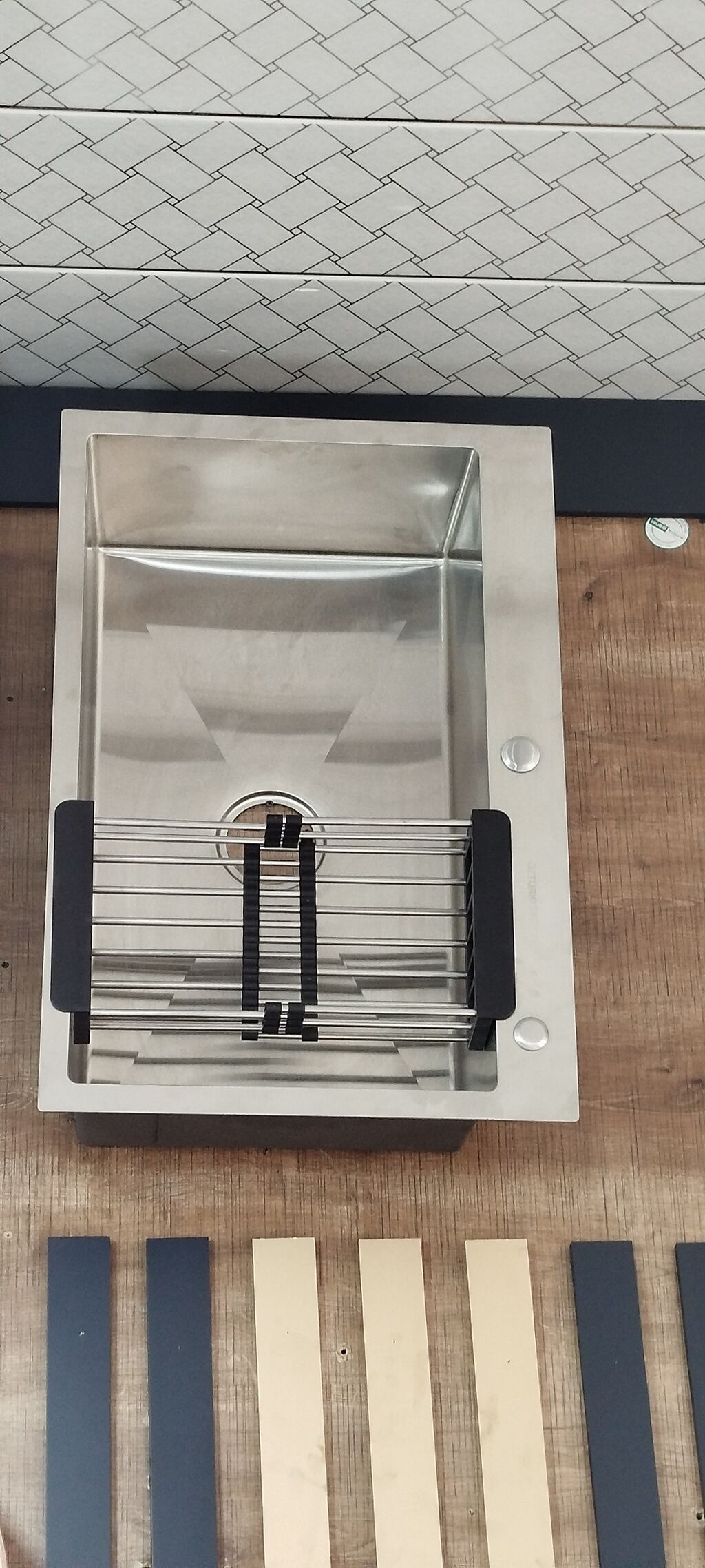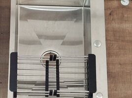 - Çıxarılan rulonlu/qatlanan quruducu rəf (paslanməz polad borular, silikon uclar) – meyvə‑tərəvəz yumaq, qabları qurutmaq və ya isti qazan altlığı kimi istifadə üçün