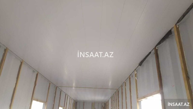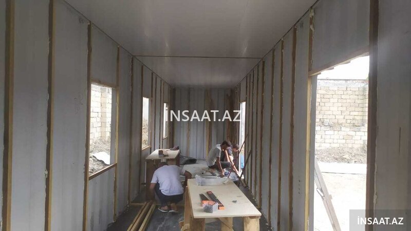 Şirkət7700 Azn Divar: Sandvic panel 50mm (STP istehsalı, yanğına davamlı) Tavan: 5 qabirgali dam paneli Pəncərə: PVC (2 əd) Döşəmə: OSB+XPS dikt, laminat Elektrik işləri: Tam təchizat Qapı: demir Anbarimizda her zaman bu ve diger