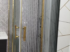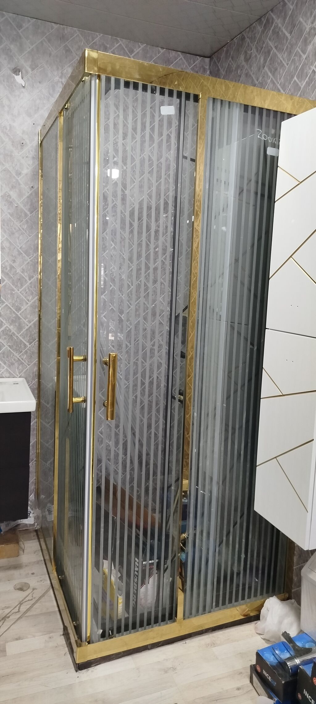 Qızılı çərçivəli duş kabinası - Ölçü: təxmini 200 sm hündürlük (şüşə