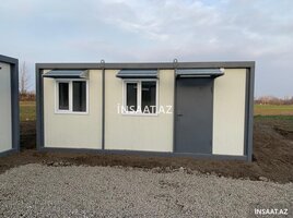 400 Azn Komfortlu ofis konteyneri 6m*2.4m Uzunluq: 6m En: 2.4m Hündürlük: 2.7m Otaq sayi: 2 Mətbəx mebel Divar: Sandvic panel 60mm (Türkiyə istehsalı, yanğına davamlı) Tavan: Lambirin Pəncərə: PVC (2 əd) Döşəmə: OSB dikt,