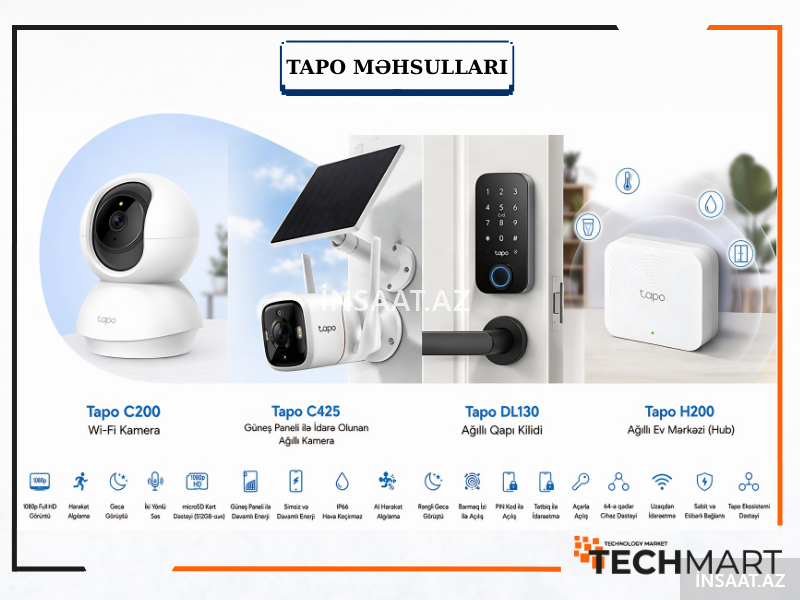 TP-Link-in Tapo seriyası ağıllı ev texnologiyalarını daha əlçatan və rahat edir. Tapo məhsulları (IP kameralar, smart prizlər, ağıllı lampalar və sensorlar) yüksək keyfiyyət, sadə quraşdırma və mobil tətbiq üzərindən tam idarəetmə imkanı ilə seçilir. Uzaqdan izləmə, hərəkət aşkarlama, enerji nəzarəti və səsli idarəetmə kimi funksiyalar gündəlik həyatı daha təhlükəsiz və komfortlu edir. Müasir dizaynı və stabil performansı ilə Tapo məhsulları həm ev, həm də ofis istifadəsi üçün ideal seçimdir.