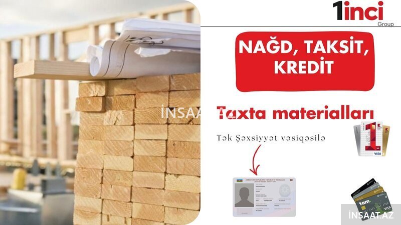 Şirkət Kredi̇t-lə, nağd həmçinin taksit kartları ( bi̇rkart, tamkart, bolkart) ilə i̇stənilən təmir-tikinti materiallarını əldə edə bilərsiniz. Kredit şərtləri və qiymətlər haqqında əlavə məlumat üçün aşağıdakı nömrələrə zəng