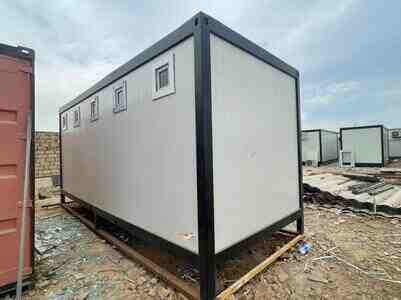 Şirkət5800 Azn Sanitar qovşaq konteyneri Uzunluq: 6m En: 2.4m Hundurluk: 2.6m - Otaq bölgüləri: 4 kabina + 2 pisuar - İzolyasiya: Mineral yun - Divar: Lambir - Tavan: Lambir - Döşəmə: Metlax - Elektrik işləri: Tam təchizat - WC